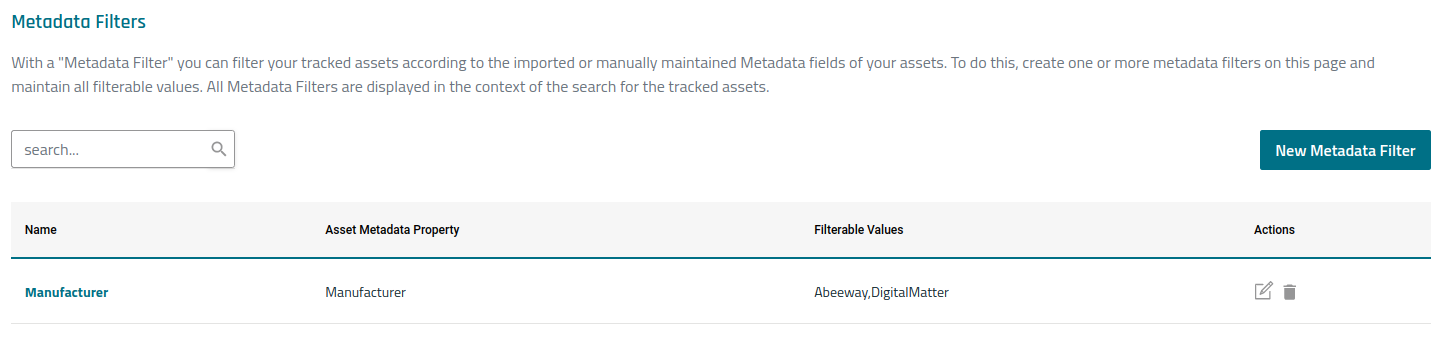 ![]() | MANAGE METADATA FILTERS Metadata Filters can be managed from Settings → Metadata Filters. Filters can be added, edited and deleted from the page. |