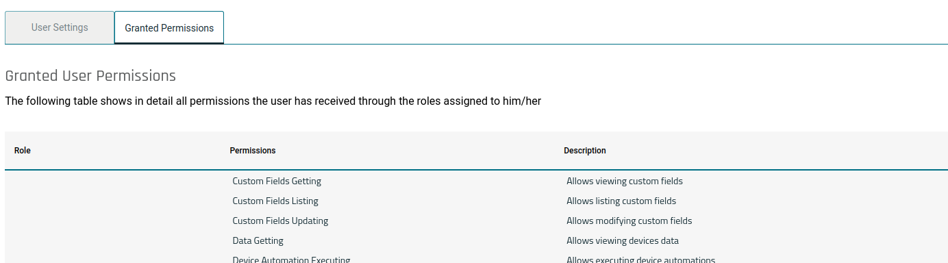 GRANTED PERMISSIONS OVERVIEW All the granted permission to the user can be observed in the | ![]() |