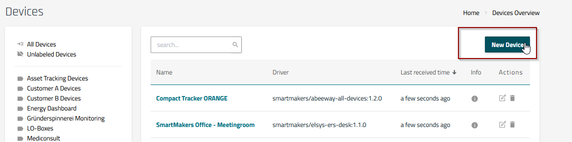 2. Start the New Devices wizard by selecting the New Devices button in the Devices Overview page.