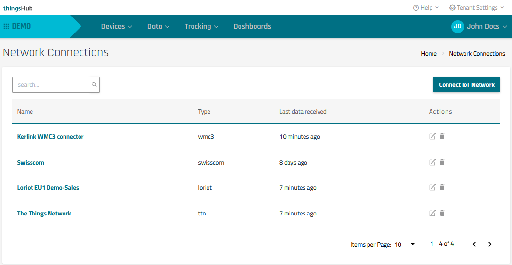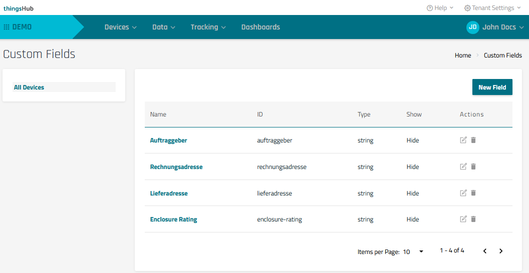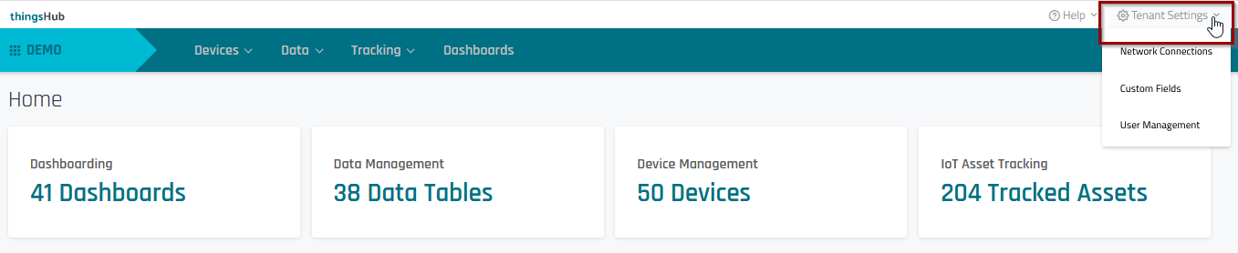 In Tenant Settings, you can manage users, manage network connections, and create custom fields.