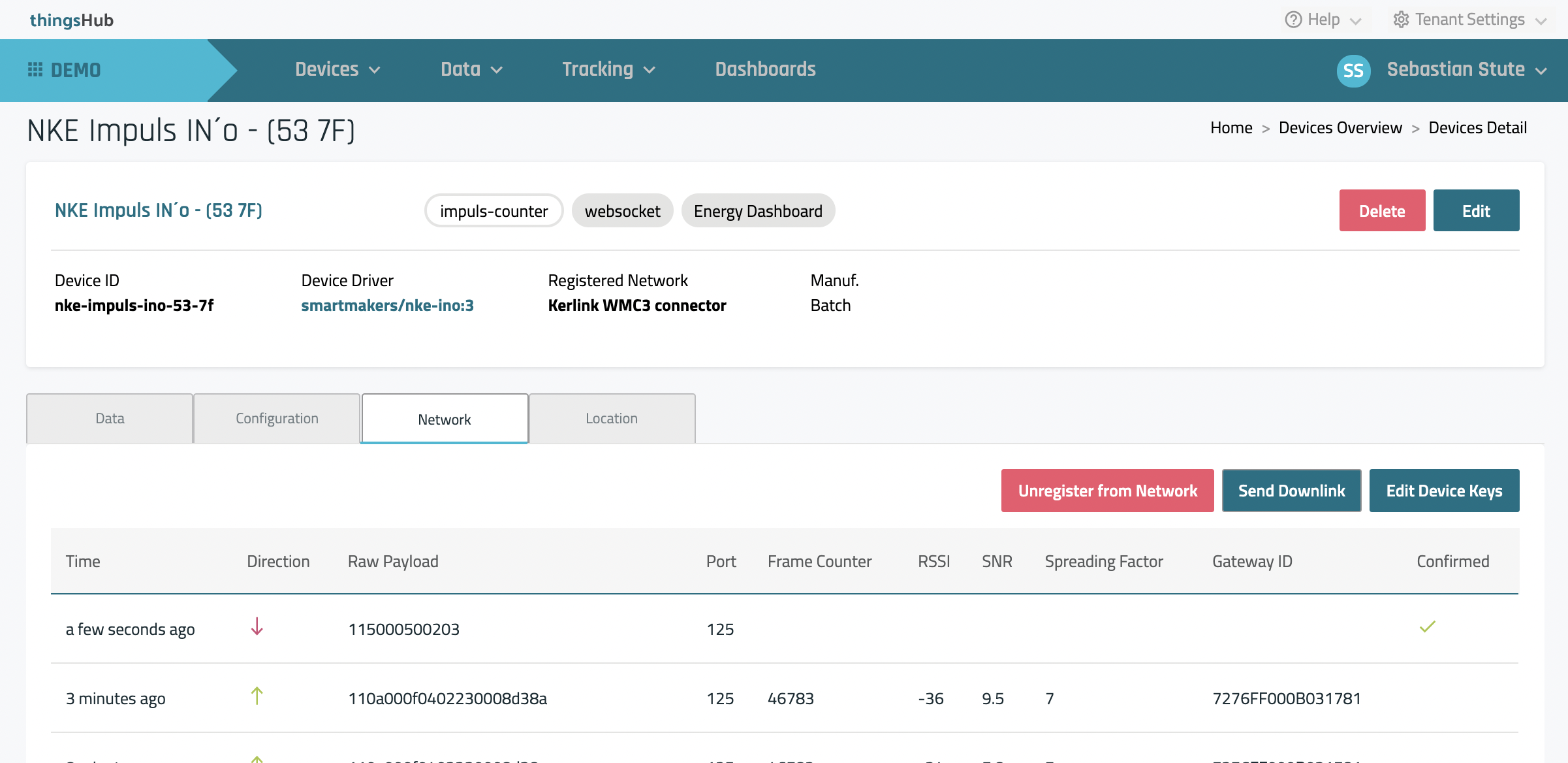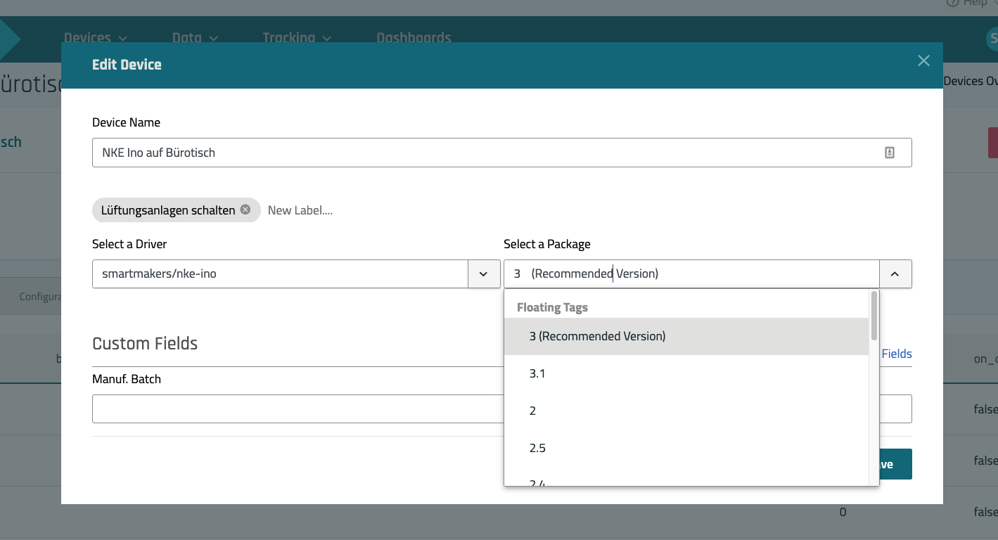 You can then assign the driver “smartmakers/nke-ino“ using the Floating Tag “3 (Recommended Version)” to the device.