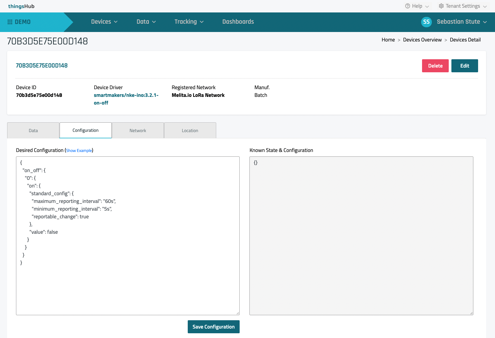 If a configuration is missing even after a long wait: Simply click the "Save Configuration" button again to resend the downlinks of the configuration aspects that are still missing to the device.