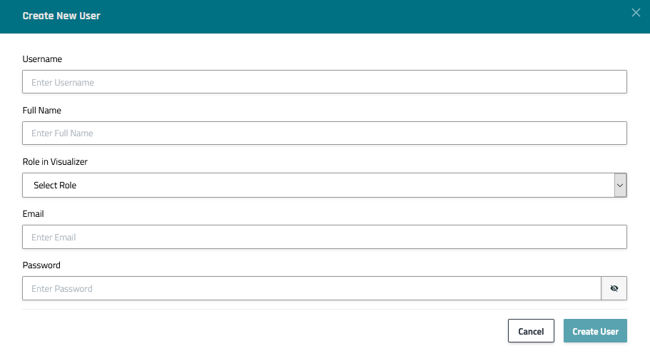 Step 1) From the User Management page, select the New User button to open the Create New User dialog.