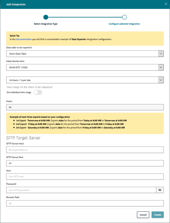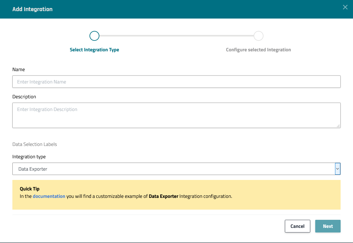 Using the New Integration wizard to set up the Data exporter