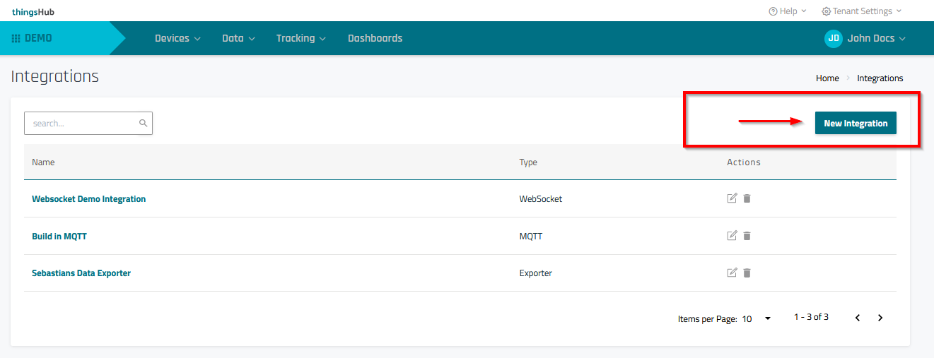 Step 1) Go to Data > Integrations and select the New Integration button.