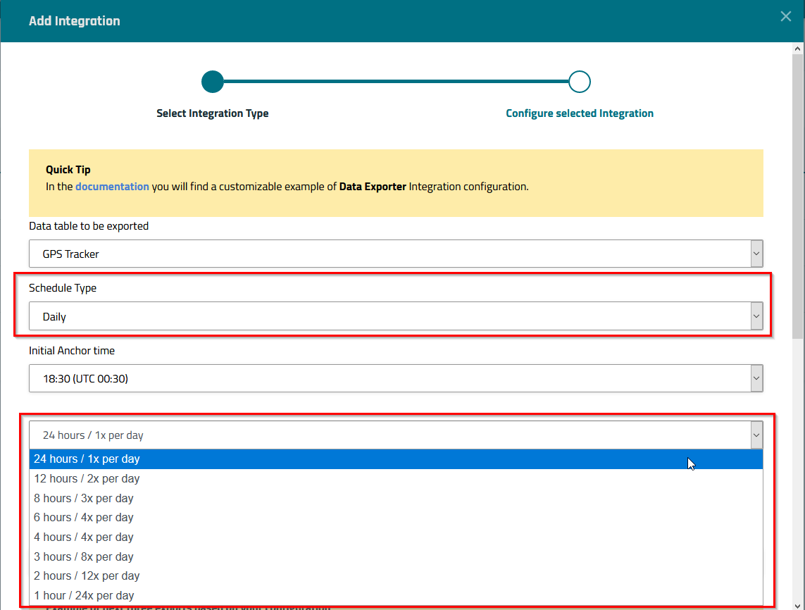 Initial Anchor time | Determines when the data will first be exported. |