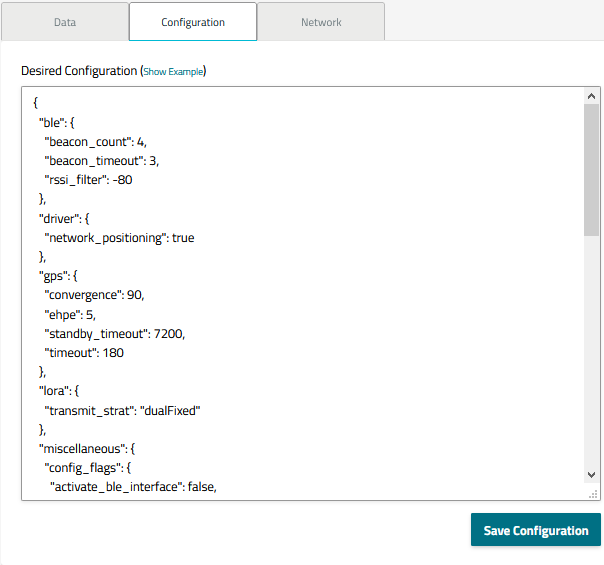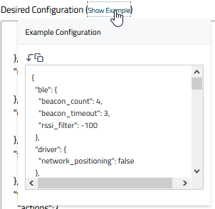 To ensure that the configuration has the correct parameters and formatting, copy and paste the example configuration from the Show Example pop-up window into the Desired Configuration field.