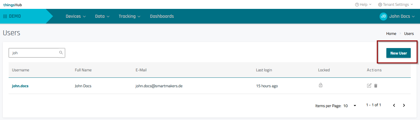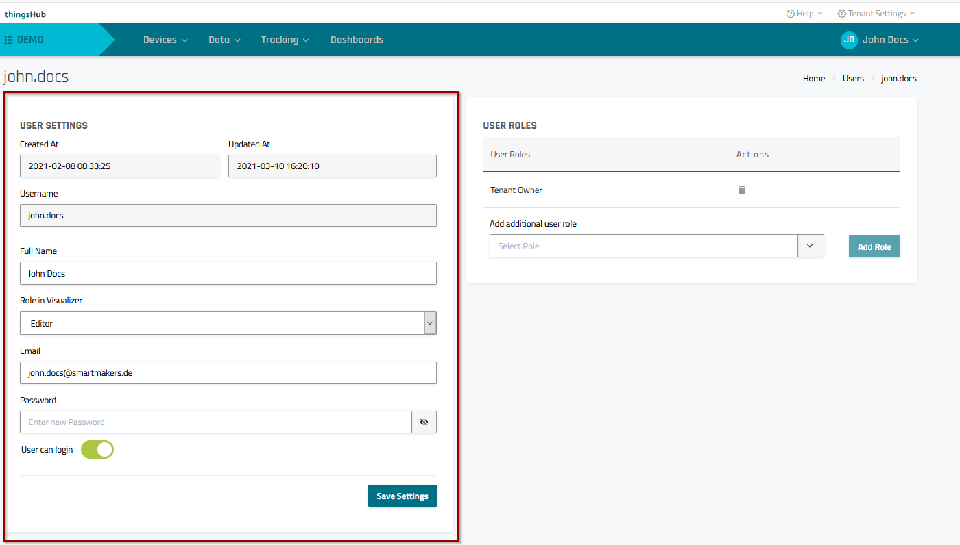 See Roles and Permissions for more information for a more in-depth explanation of the different User Roles in the thingsHub.